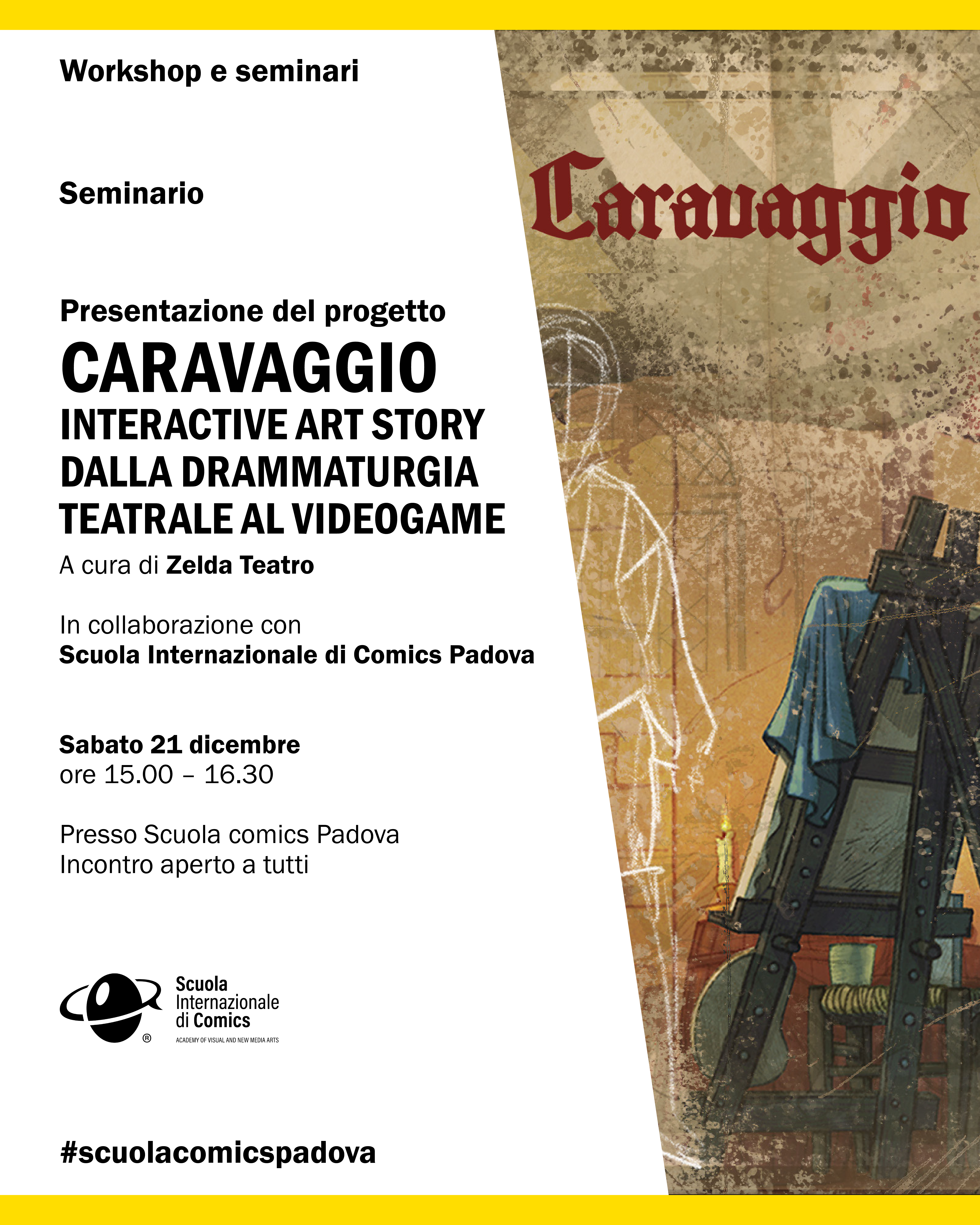 CARAVAGGIO è la prima pilot story del progetto INT.AR.S, un innovativo format digitale ideato da Zelda Teatro per raccontare episodi storici e scoperte scientifiche e veicolare contenuti educativi attraverso la gamification. INT.AR.S unisce l’esperienza del fumetto e dell’animazione, dell’interpretazione attoriale, del testo storico e narrativo e del podcast, con strategie di interazione mutuate dai videogame e dai librogame per favorire l’apprendimento.