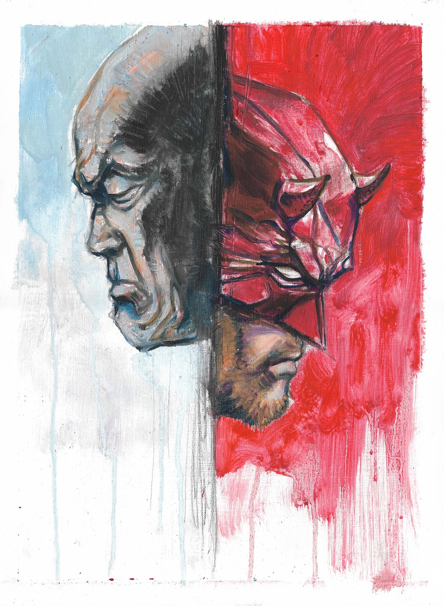 Già dallo stesso periodo si distingue nel mondo dell’arte per i suoi dipinti a olio surreali, spesso popolati da creature dal sapore supereroistico, che mostrano subito la sua cifra stilistica originale.