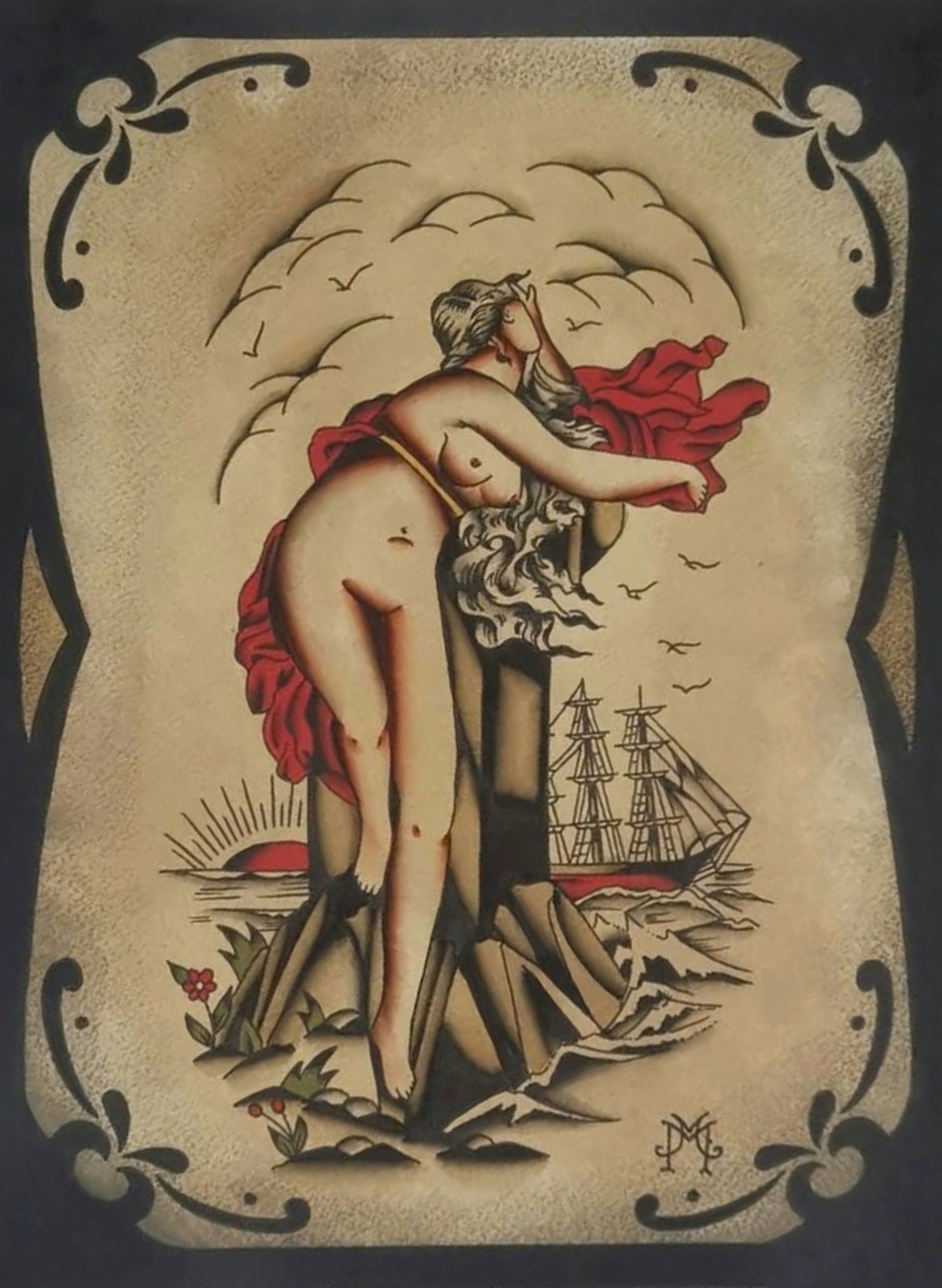 Trae ispirazione soprattutto dai vecchi flash di ispirazione sia europea che americana, ma anche da dipinti, sculture, arte cimiteriale, cartoline e illustrazioni vintage.