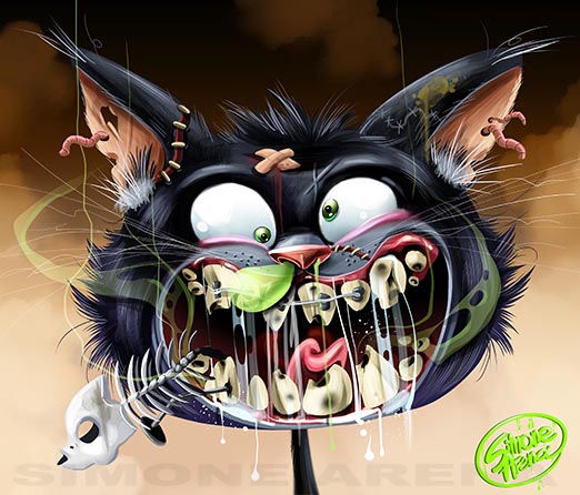 Mi definisco un illustratore e concept artist con molte esperienze come “sketch card artist”. Ho avuto infatti la possibilità di collaborare con importanti aziende internazionali del settore come la newyorkese Topps Company (figurine), le californiane Cryptozoic Entertainment (giochi da tavolo) e Upper Deck (carte collezionabili). Per loro, ho realizzato illustrazioni per titoli celebri come le figurine “Garbage Pail Kids” (gli “Sgorbions” in Italia), le card “Wacky Packages” e “Miramax Clerks”.